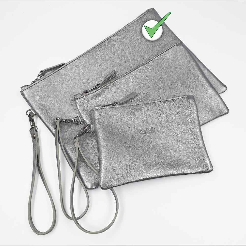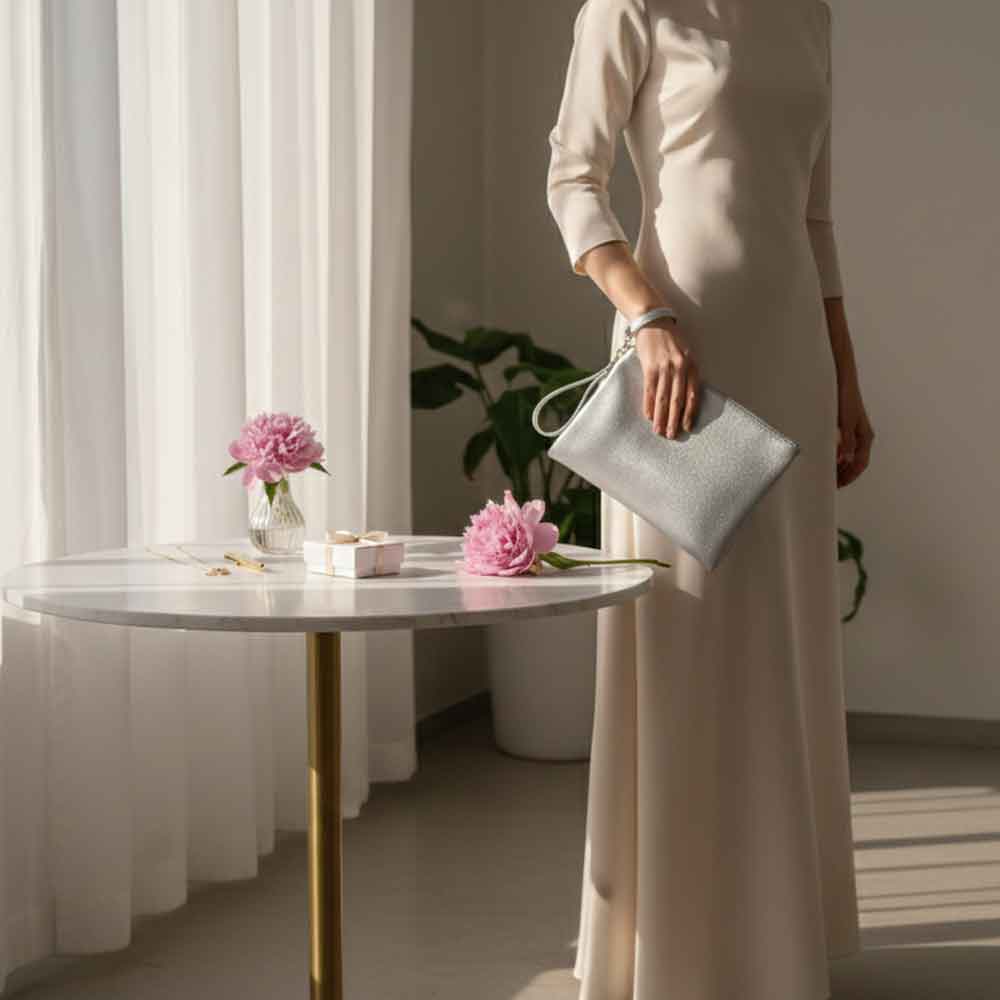 Sophistiquée, lumineuse et résolument contemporaine, notre pochette en cuir argenté est la pièce parfaite pour celles qui recherchent un accessoire mode à la fois tendance et pratique. Son look offre un éclat métallisé unique, capable d’illuminer instantanément une tenue, qu’il soit minimaliste, casual ou ultra-festif.