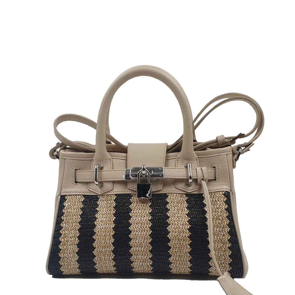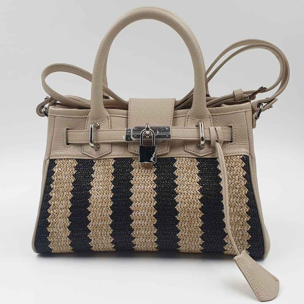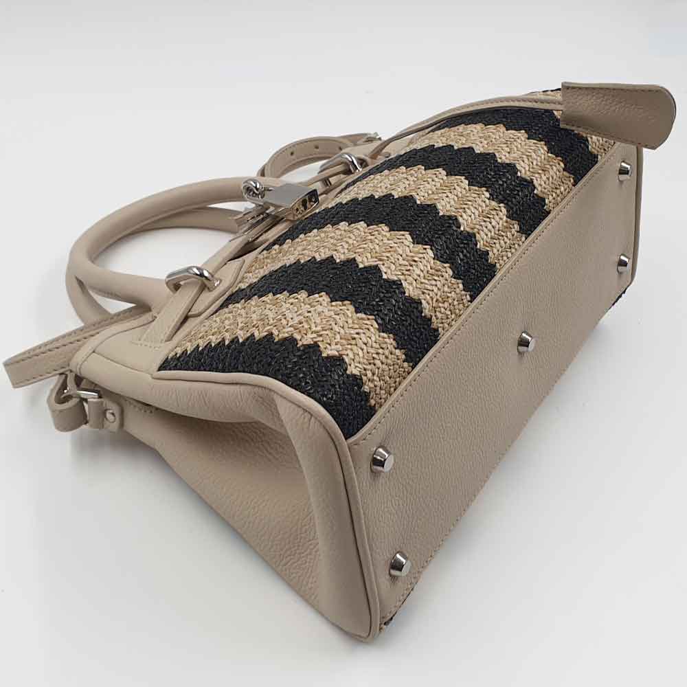 - Cuir grainé pleine fleur coloris Triana & paille tressée naturelle noire et écrue