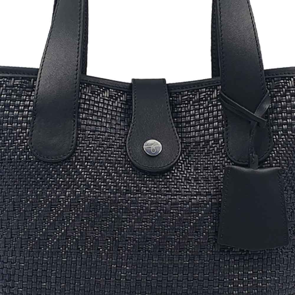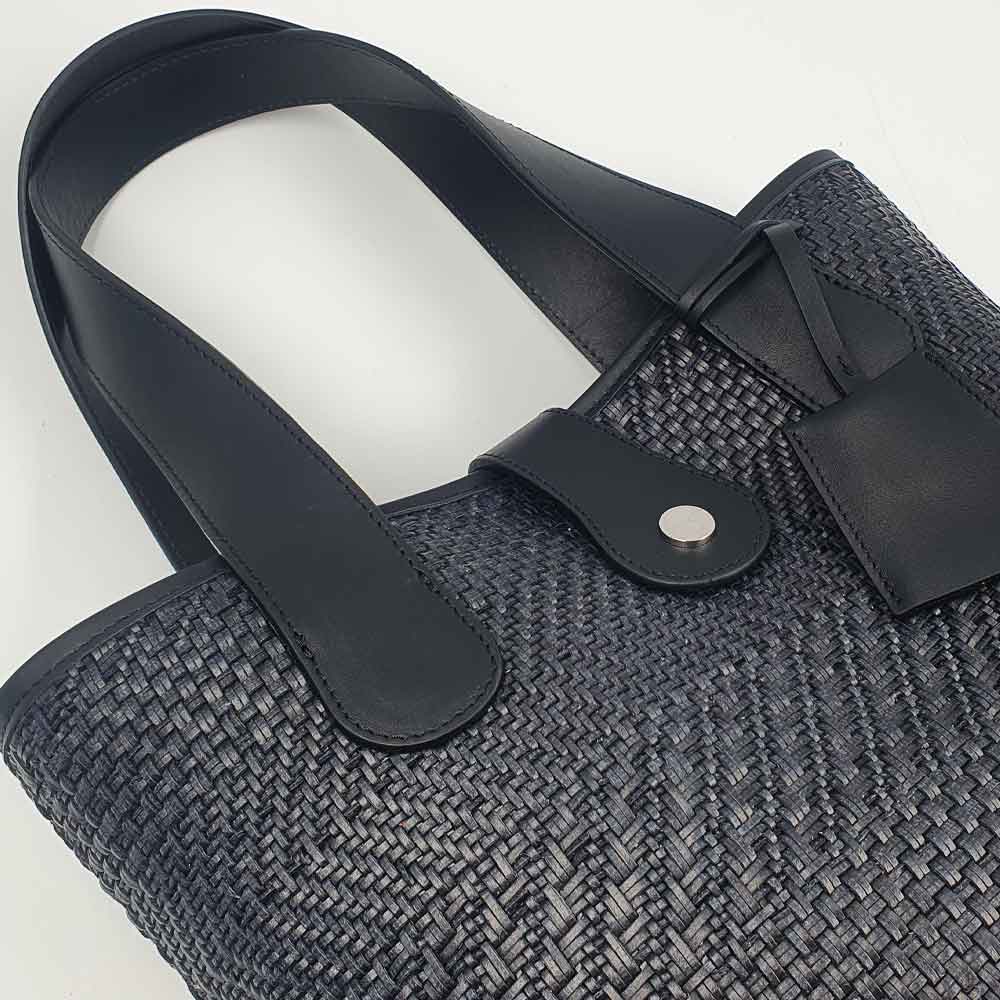 • Cuir lisse pleine fleur coloris Noir & paille tressée naturelle noire